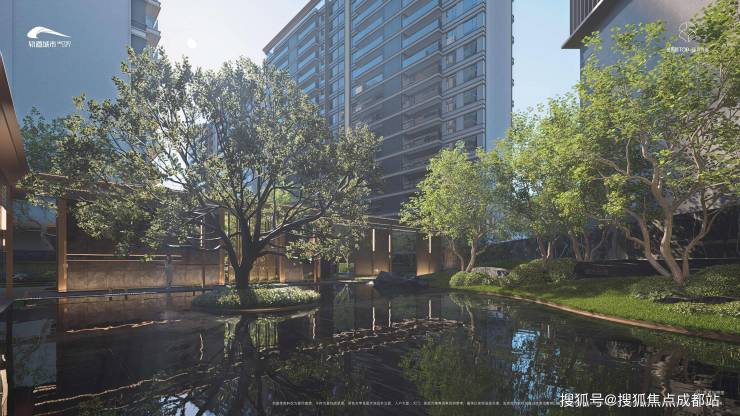 海派设计:园林以“一轴三院八景”为框架,融合川西植物图腾与秘色瓷文化,建筑立面采用深灰色铝板与玻璃幕墙,营造现代东方雅奢感。