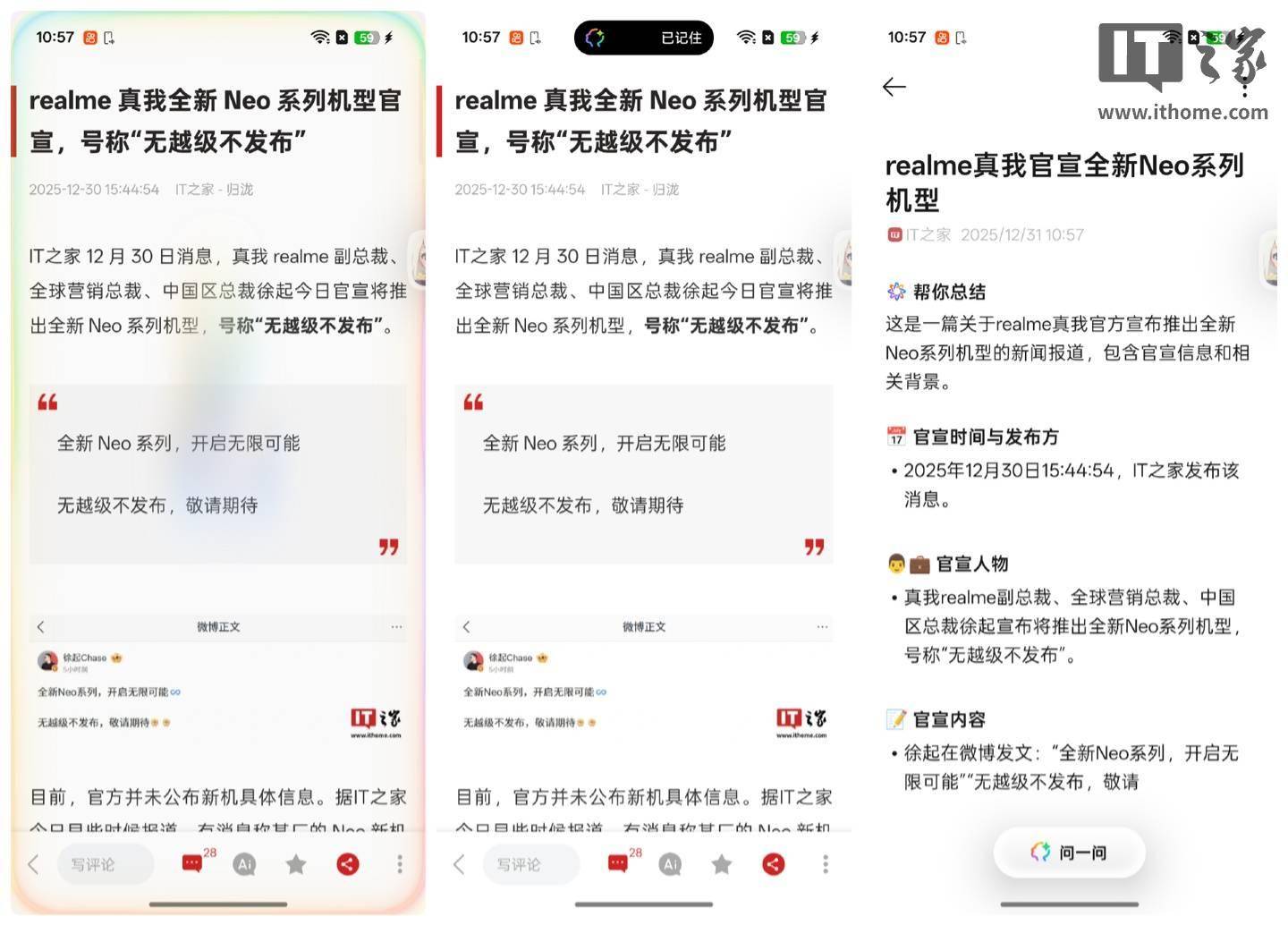 realme UI 7.0 的核心功能“AI 一键闪记”简直是为此场景量身定制。只需简单的三指上滑,系统就能帮你快速记下屏幕上的内容。
