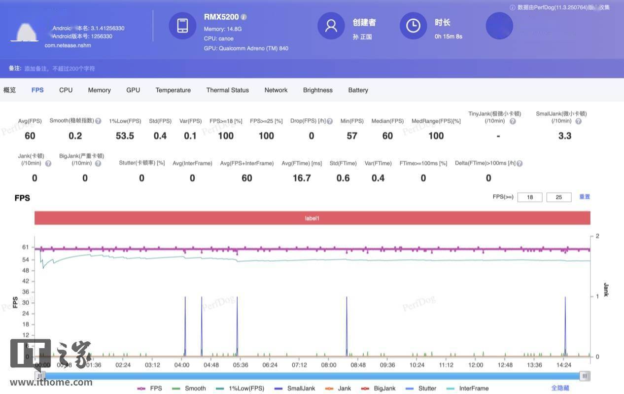 接下来是《逆水寒》手游的重载测试,在最高画质下,线 Pro 的帧率依然稳定逼近满帧,1% Low 帧率也能维持在 54 帧。