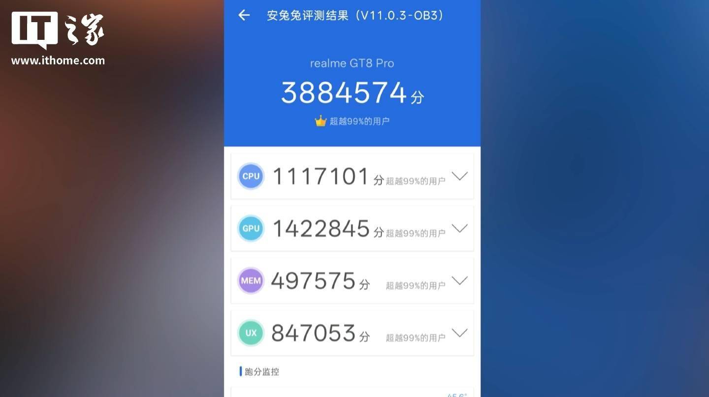 在IT之家的跑分实测中,安兔兔跑分总分达到了的 3884574 分,其中 GPU 得分更是高达 142 万分。