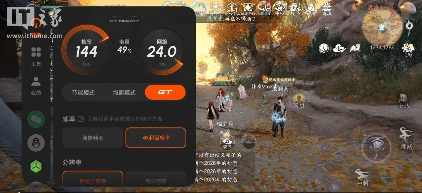 如下图所示,通过游戏侧护栏呼出超级帧率之后,原本最高 60 帧的游戏体验,瞬间来到了 144 帧,翻倍不止。