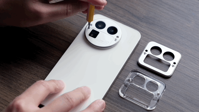 是的 —— 用户可以像玩积木一样,只需拧下螺丝,就能自行更换镜头模组的装饰件。