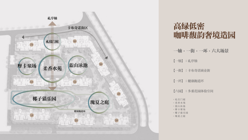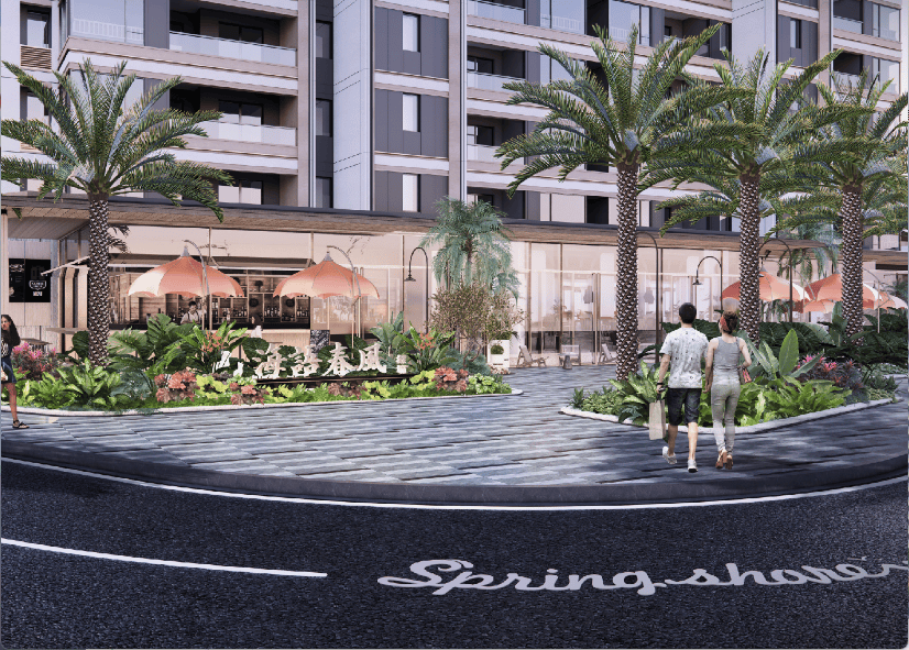 项目打造建筑面积约2437㎡社区外向型底商街区,以咖啡为主题,将潮流街区和烟火人文相结合,呈现轻奢品质+美食休闲等多重主题业态。
