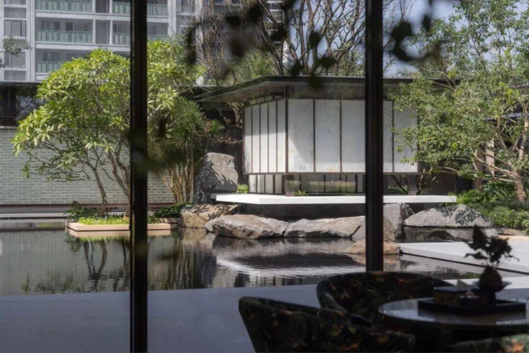景观设计采用“一轴一环”布局,通过九大院落的启承转合及层层递进的造景手法来强调东方雅奢调性,为业主勾勒一幅“归家即度假”的写意山水画。